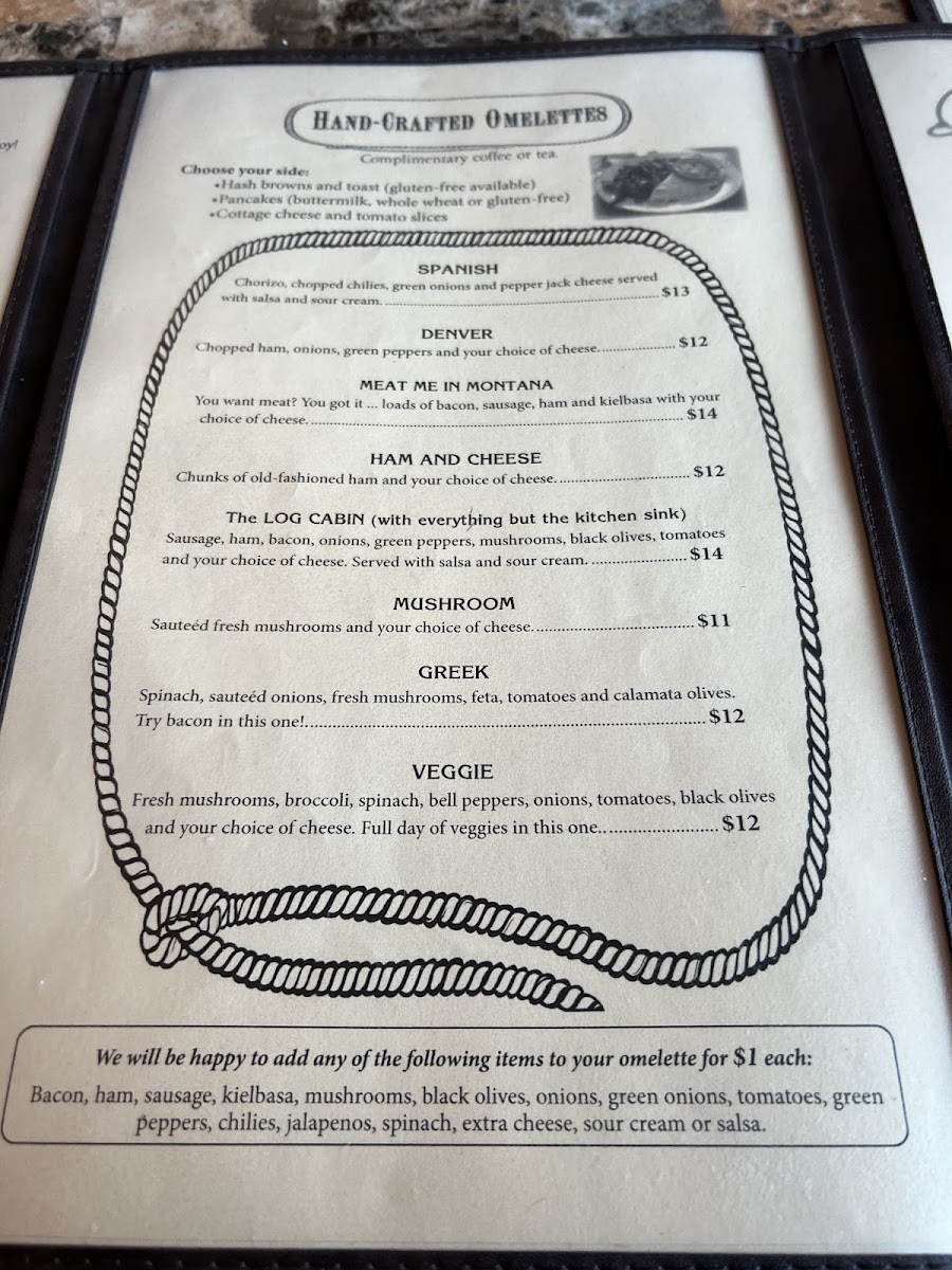 Log Cabin Cafe Menu